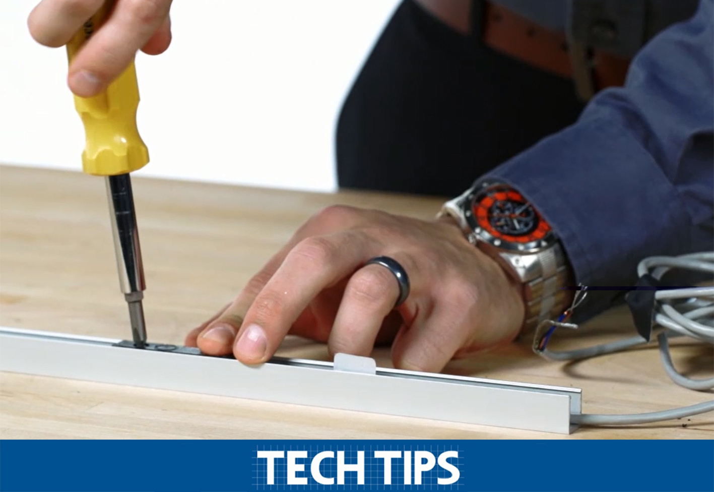 Kyle demonstrates how to install the limit switch onto the track in the video. He explains: “The user only needs to slide it into position on any part of the unit and screw it down until secure. This can be adjusted as necessary for where the engineer wants to mount the unit.” The cover strip for each linear unit is provided for aesthetic protection. Each limit switches cables can slide into position on the track.