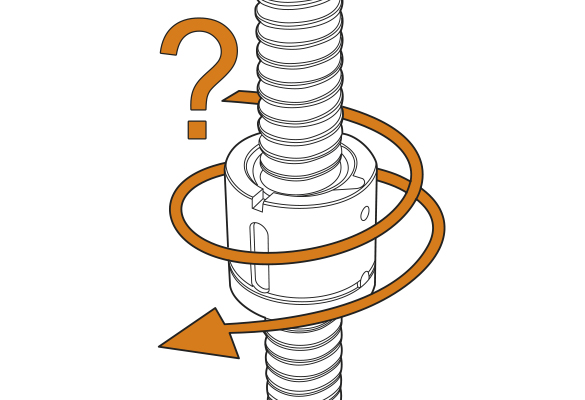 滾珠絲杠可用于垂直應用。為了防止反向驅動,需要使用螺母防轉機構并向系統施加反向驅動轉矩以保持負載。